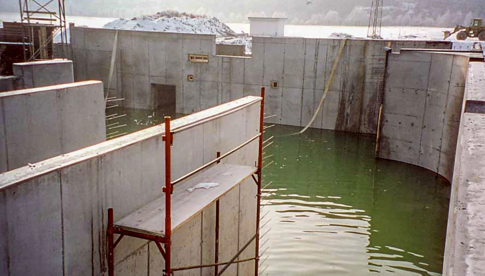 Die zentrale, vollbiologische Kläranlage wurde am 12.05.2001 offiziell ihrer Bestimmung übergeben.