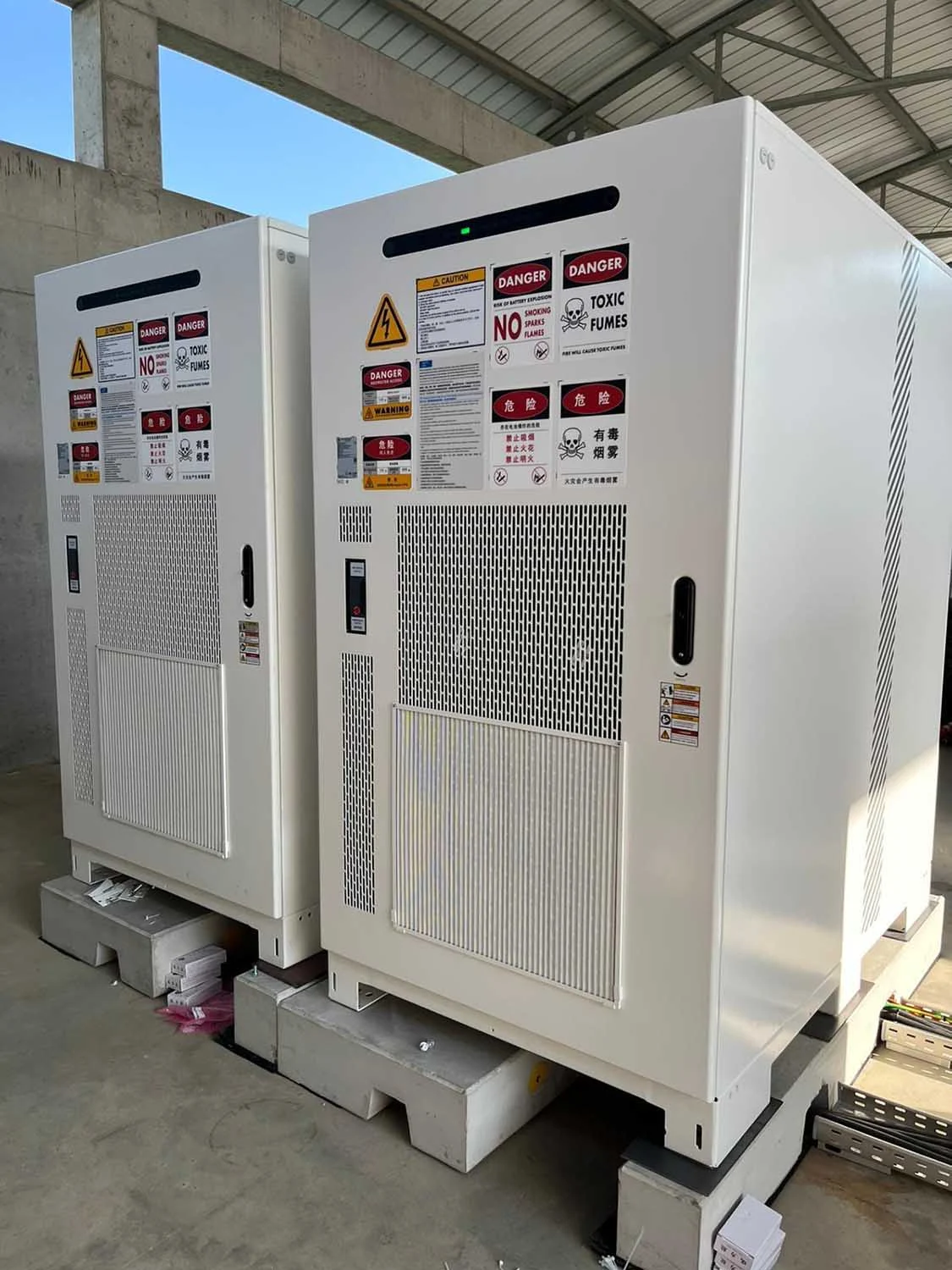 Zum Einsatz kommen Huawei Luna 2000 Speicherlösungen, die modular aufgebaut sind. Insgesamt wurden drei Einheiten mit je 215 kWh Speicherkapazität installiert.